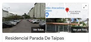 Av. Elisio Teixeira Leite, 7.424 Condominuio Residêncial Parada de Taipas Ponto de Refência: Sitio Morro Grande e Hipermercado Atacadão. Bairro: Taipas Cidade: São Paulo - SP